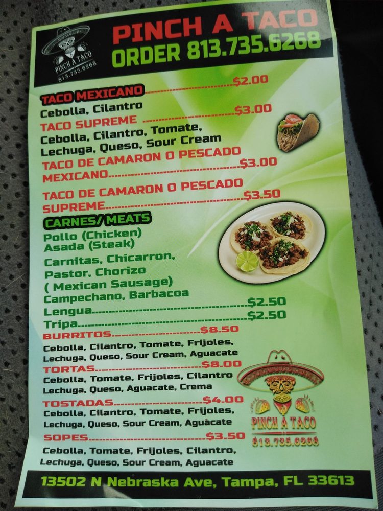 Welcome to Pinch A Taco, a delightful food truck experience located at 13502 N Nebraska Ave, Tampa, FL. This unclaimed gem specializes in authentic tacos and offers a variety of mouthwatering dishes that capture the essence of Mexican cuisine.